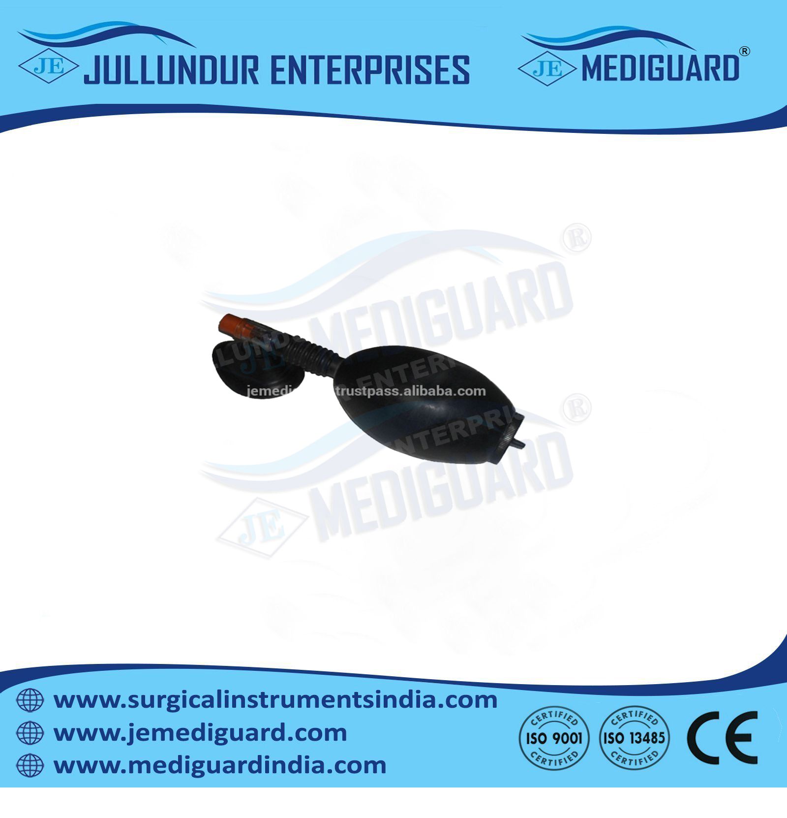 JULLUNDUR ENTERPRISES / JALANDHAR ENTERPRISES SURGICAL INDUSTRIES is engaged in manufacturing, supplying & exporting BLACK RUBBER RESUSCITATOR ADULT.
