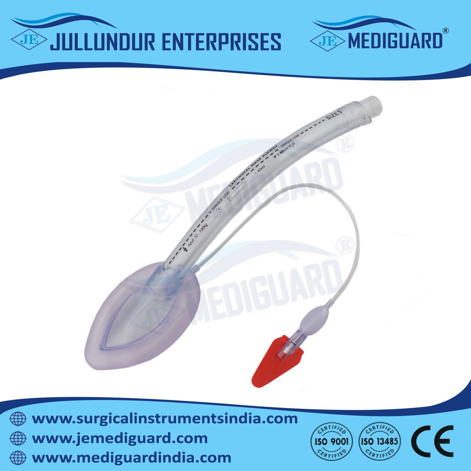 JULLUNDUR ENTERPRISES / JALANDHAR ENTERPRISES SURGICAL INDUSTRIES is engaged in manufacturing, supplying & exporting PVC LARYNGEAL MASK AIRWAY.